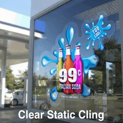 - Static clings clear for temporary application to glass